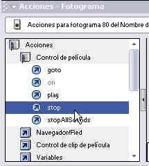 Pero si nosotros queremos es que cuando llegue al fotograma final de la animación esta se detenga tenemos que utilizar la acción STOP.